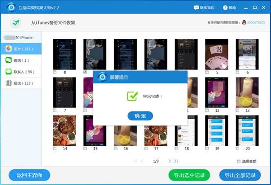 步驟2,安裝互盾蘋果恢復大師之後,打開軟件,選擇裡面的iTunes備份掃描恢復功能,將剛剛備份的文件進行掃描。