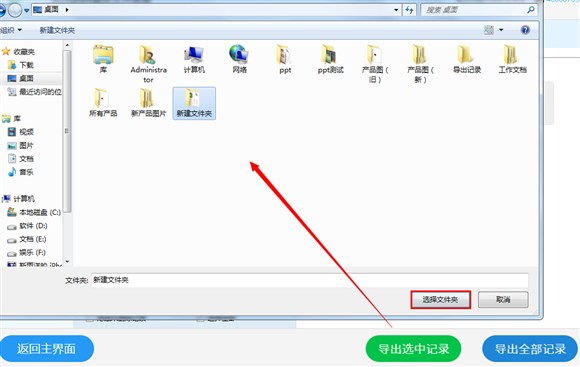 5、在彈出的對話框中點擊選擇要恢復的手機照片的儲存位置,也可以新建文件夾儲存照片文件,然後點擊“選擇文件夾”按鈕,接下來等待文件導出恢復完成即可。
