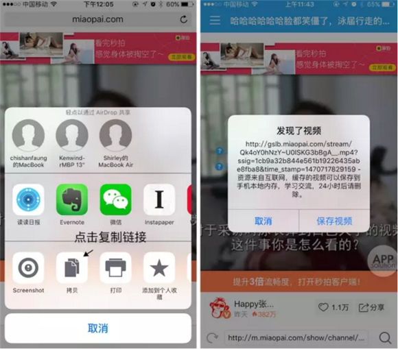 找到你相中的視頻源,復制鏈接(如果無法直接復制,可以先在 Safari 中打開),在 Funny 視頻助手中識別下載視頻。
