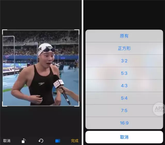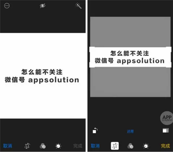 iOS 用戶在相冊裡點開照片,點擊右上角的「編輯」按鈕,然後在左下角找到裁剪工具,拖動角標調整裁剪范圍,然後點擊完成即可。
