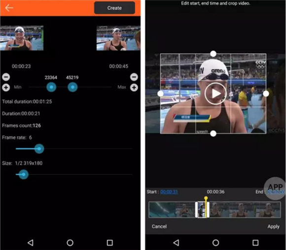 如果你是 Android 黨,可以用 Gif Maker 這款 app 來將視頻轉為 GIF。其操作過程與 ImgPlay 類似:同樣是選擇要截圖的視頻片段和尺寸,以及加上搞怪文字。