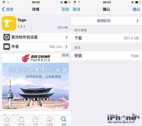 1.在Cydia中,搜索Tage,並安裝該插件。