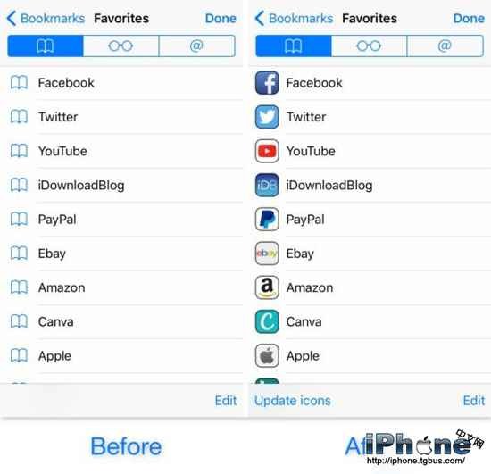 現在很多桌面級的浏覽器都可以在書簽中顯示真實的網站圖標,那麼移動版浏覽器也應該做得到,如果你是越獄用戶的話,BookmarksIcons這款插件就可以為你實現。