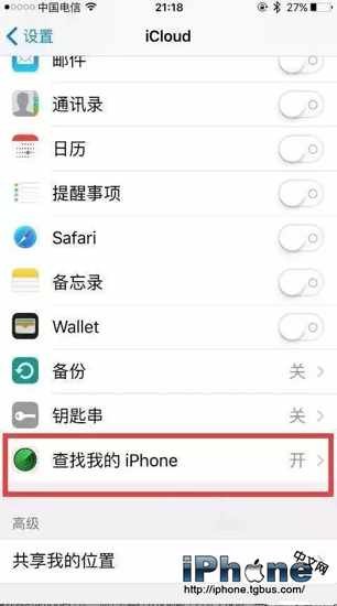 登錄後,必須把查找我的iPhone打開,為什麼要打開這項呢?打開了這項,每次刷機都需要自己的apple ID賬號密碼才能激活,如果沒有這個賬號密碼,這部手機等於作廢了,所以必須要記得自己的apple ID賬號密碼。