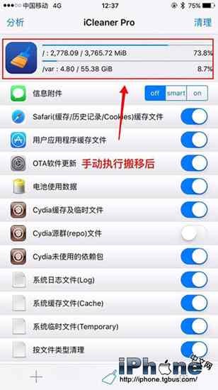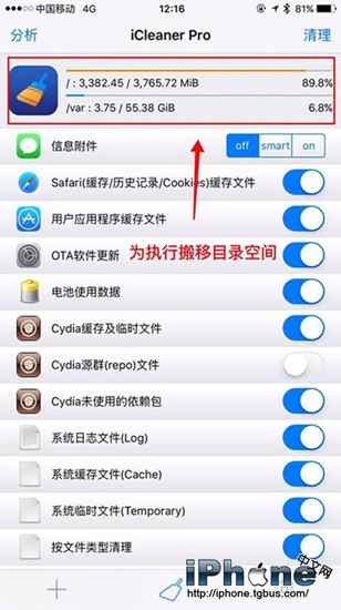 玩越獄設備的朋友都知道,在以往的iOS設備越獄時會因為在系統分區目錄植入Cydia,所以導致空間容量不足。完成首次打開Cydia是自動將系統分區的,會自動將Applications(程序)目錄進行搬移,從而達到擴充系統分區,增加可用容量的目的。