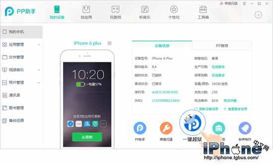 1、手機設備連接PP助手(PC版5.0),請保持手機網絡通暢,按照引導安裝【越獄工具APP】