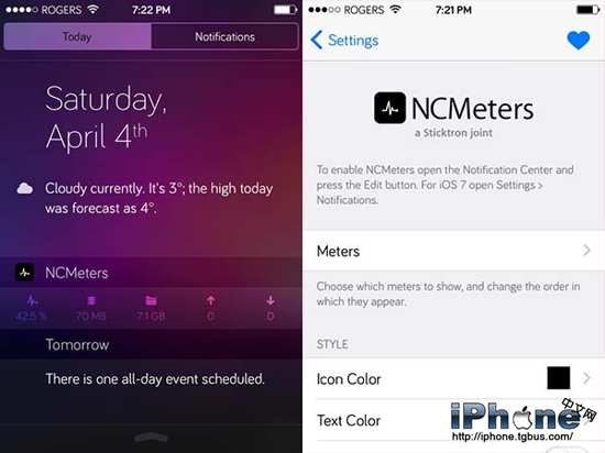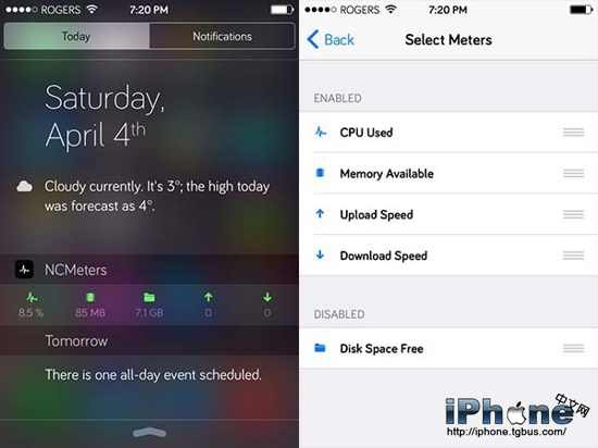 NCMeters 是一款通過通知中心來監測系統重要指標的非侵入式插件。它可以讓你實時查看 CPU 的使用情況,內存和儲存空間的使用量,和監測上傳和下載速度。