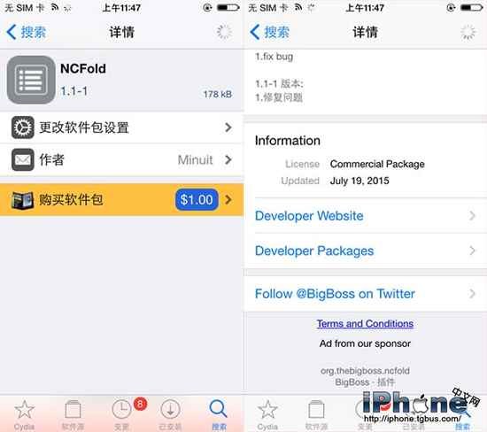 目前,該插件已兼容iOS 9及以下越獄系統,暫不支持iOS 9.1及以上系統。有興趣的小伙伴可以在BigBoss源中下載到該插件(售價:1美元)。
