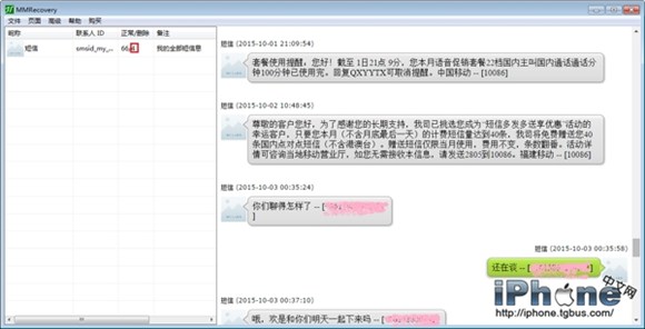 目前手機短信仍然是人們日常交流的重要的通信工具,一些iPhone手機用戶由於使用不當,經常發生誤刪除短信記錄的情況。一旦短信聊天記錄被誤刪除了我們該怎麼辦呢?這時不要著急應該立即停止對手機的使用,由於短信所使用的數據庫對於刪除的記錄並沒有真正的物理刪除,只是打上了刪除標記的邏輯刪除,只要恢復及時還是有可能恢復的。在這裡小編將為大家介紹一種蘋果手機短信的刪除恢復方法,該方法非常簡單對於一般的手機用戶都可以獨立操作,並且無需發送數據文件,真正的有效保護用戶的個人隱私。