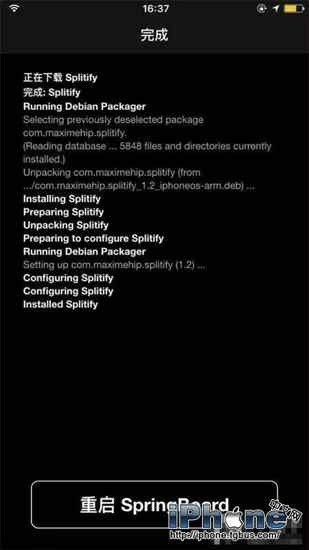 點選確認安裝,安裝完畢再點下重啟SpringBoard即可。