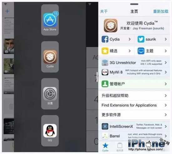 小編感覺這個插件的好處在於不管在進行什麼需都能呼出APP選單,比如說我在聊QQ的時候突然想進Cydia看下情況,就不需要在返回桌面點擊了,個人感覺這個插件還是挺實用的,有興趣的就試試吧。