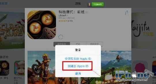 2、然後進入AppStore隨便點擊一個游戲下載,這個時候會詢問你,選擇“創建新ID”