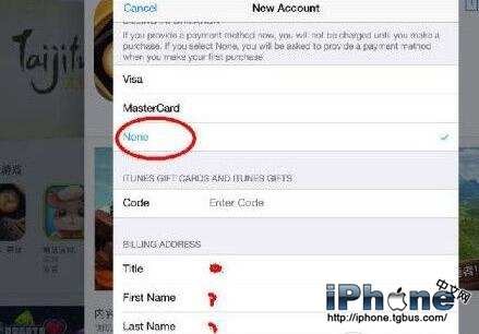 6、這裡付款方式選擇“None”、然後下面的Code留空,接下來填寫姓名和稱呼(隨便填就可以了)