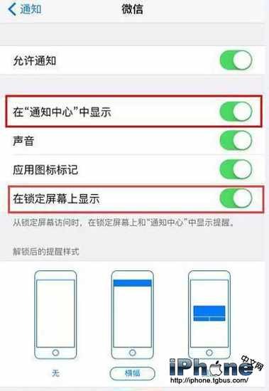 3.打開【在“通知中心”中顯示】和【在鎖定屏幕顯示】的開關。