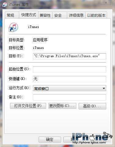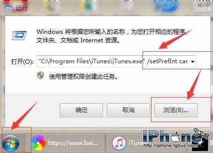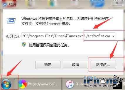 1、在開始菜單,選擇"運行",在運行界面的或右下角浏覽選擇ITUNES程序並打開,如果不知道ITUNES安裝在哪裡,可以在桌面ITUENS的快捷方式右鍵“屬性”--“目標”裡面看到網址。