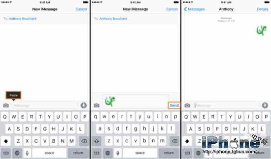 8.點擊發送就可以將新的表情符號發送給對方了,不要擔心對方看不到這些新的表情,因為這是以小圖片文件格式發送,對方運行較老版本的iOS系統應該也是能夠看到的。