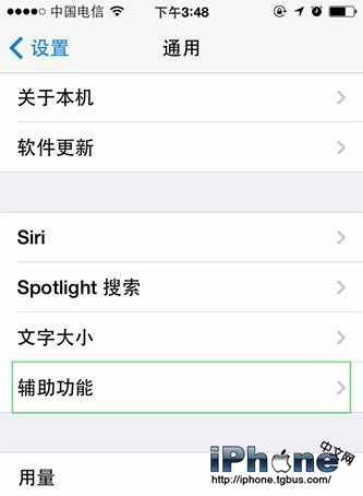 1、進入輔助設置,打開系統設置--通用,進入“輔助功能”設置界面。