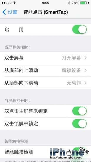 目前SmartTap支持三種手勢與三個動作,手勢分別是:雙擊,從底部上滑和從頂部下拉;三個動作分別是:點亮屏幕,解鎖設備與開啟指定app。通過三個手勢在鎖屏(黑屏)狀態下您可快速激活以上三個實用動作,效率加倍的同時物理按鍵也得到了一定程度保護。