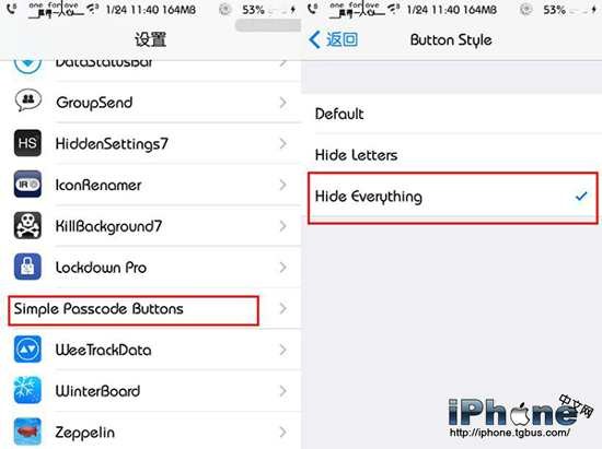 SimplePasscodeButtons插件的主要功能是隱藏解鎖密碼的數字與字母 。在插件設置中,可以選擇隱藏字母,也可以全部隱藏。現已支持iOS 9及以下越獄系統,暫不支持iOS 9.1系統。有興趣的小伙伴可以BigBoss源中下載到該插件。