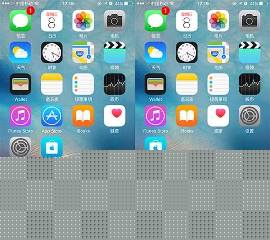 ④隱藏效果,左圖為隱藏前,右圖為隱藏後。如果想要在隱藏期間打開App Store應用,可以在搜索中輸入App Store,即可顯示App Store應用應用。