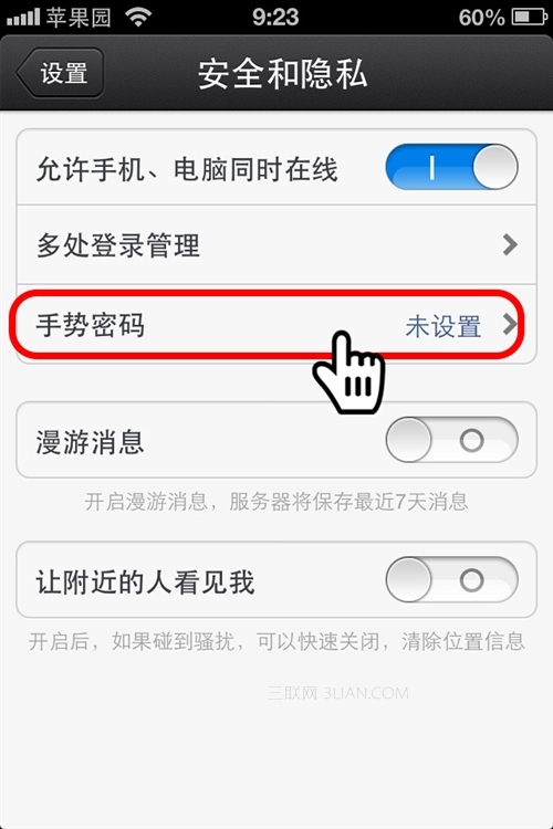 第4步:進入選擇“手勢密碼”選項。