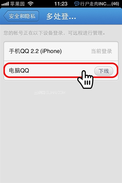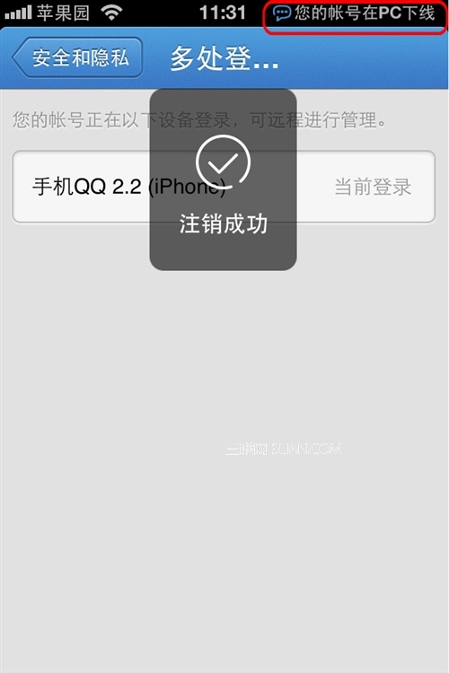 經常使用QQ聊天的網友肯定知道同一個QQ是可以在電腦和手機多處同時登錄的,這就出現一個情況如果臨時外出電腦上QQ上忘記下線,自己的聊天記錄還是容易在PC端被洩漏,蘋果園小編教你巧妙使用手機上的多處登錄管理功能,在手機上即可下線PC電腦上的QQ。