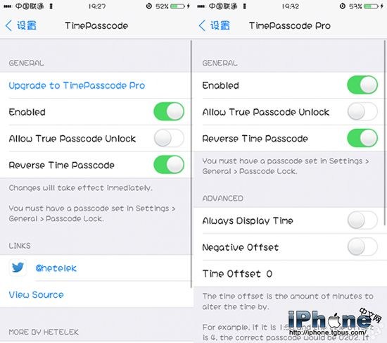 Pro既然是收費版本,肯定有一定的理由。除了最基本的功能外,可以設置一個時間間隔。比如現在的時間是13﹕50,設置Time Offset,就可以增加間隔。設置為5,那麼解鎖密碼就是1355,打開Negative Offset,解鎖密碼就是1345。