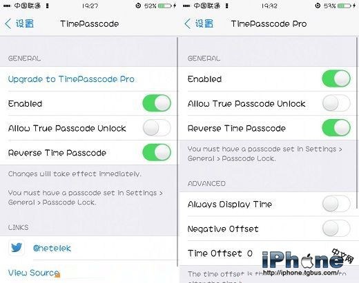 Pro既然是收費版本,肯定有一定的理由。除了最基本的功能外,可以設置一個時間間隔。比如現在的時間是13﹕50,設置Time Offset,就可以增加間隔。設置為5,那麼解鎖密碼就是1355,打開Negative Offset,解鎖密碼就是1345。