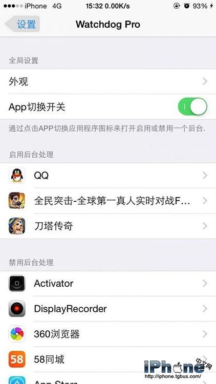 啟用後台,找到你要啟用後台的APP,將“啟用後台處理”打開就好了。