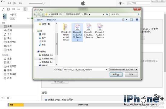 4、iTunes會彈出對話窗--請選擇已經下載好的固件--點擊更新--等待iTunes運行。