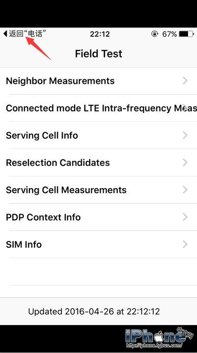 進入到如下圖所示的信號測試界面,這時候,需要注意,不是長按電源鍵,而是按一下HOME鍵返回到iPhone桌面,這樣就可以取消了(注意不是長按HOME哦!)