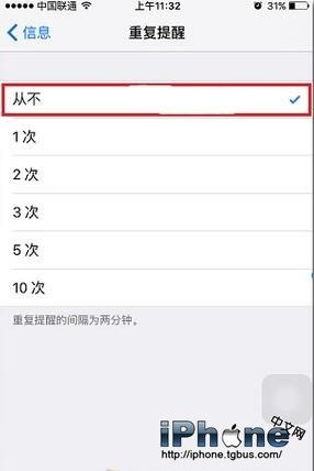 想要關閉iPhone信息重復提醒的朋友,快去試試吧,雖然是一個小功能,但很實用。尤其是對一些手機不離手的朋友,一般短信提醒一聲就知道了,無需重復提醒。