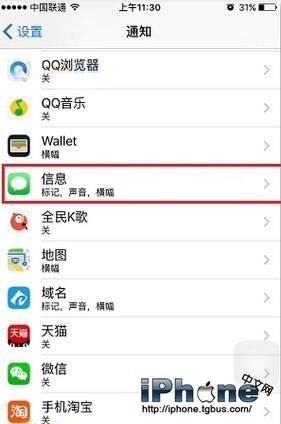 1、首先進入iPhone的「設置」,然後依次進入「通知」-> 「信息」設置,如圖。