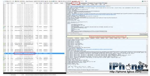 5. 在該刪除的下載項上方找到域名為 p32-buy.itunes.apple.com、url開頭為 /WebObjects/MZBuy.woa 的請求,切換右側至 Inspectors 選項卡,並點擊中間的黃色塊(Response is encoded and may require decoding before inspection. Click here to transform.)