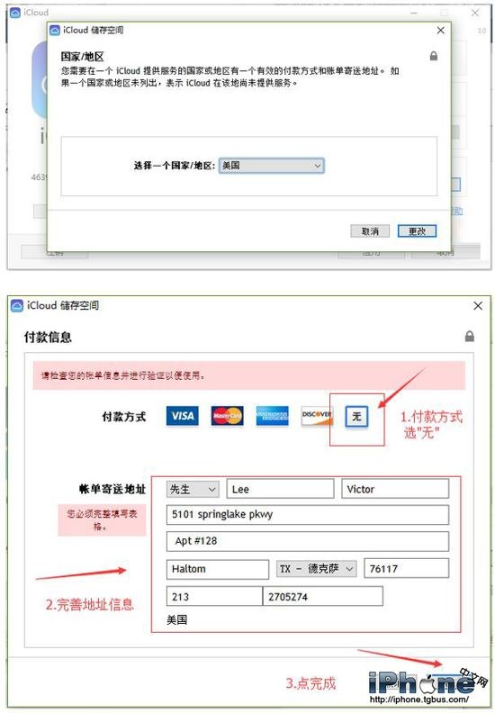 3. 選擇你想要修改的國家或地區,點擊“更改”,然後你就會發現付款信息可以選擇“無”,完善地址信息,完成。而在“賬單寄送地址”中,選擇的地區和郵編要對應,否則可能會失敗,電話號碼和街道地址則沒有太多要求。