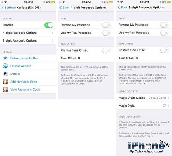 之前曾有一款名為“TimePasscode”的插件允許用戶將iOS設備的鎖屏密碼設置成與時間同步的數字,不過大多都不支持新增6位數字密碼功能的iOS9,最近在BigBoss源一款名為“Callisto”的新插件發布了,功能更豐富。