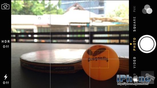在該示例中,iPhone已自動設置聚焦(和曝光)在照片背景上,這就是為什麼前景中的網球在焦點外,而背景卻在焦點上。如果我的原定目標是拍攝網球,我將觸按球的屏幕上來手動設置聚焦(和曝光)在下列示例中顯示的點上。