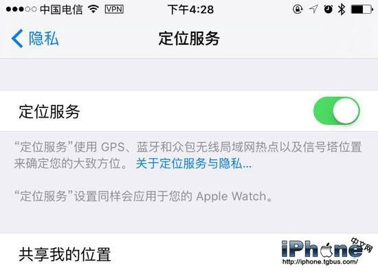 ‘共享我的位置’這個功能在旅游時比較有用,可以幫助別人找到你,以防走失。用不上的朋友可以在‘定位服務’中找到‘ 共享我的位置’,關閉位置共享。