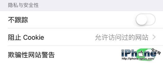 返回至 Safari,在‘隱私與安全性’一欄中,把‘不跟蹤’‘欺騙性網站警告’開啟,然後阻止記錄 Cookie,更安全地訪問網頁。