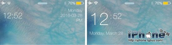 另一種選擇是“MIUI Style”,相信國內用戶對這個詞不會感到陌生,使用這個外觀選擇後 iOS 的鎖屏時間將被移到左上角,並改為時鐘大、分鐘小的樣式,日期位於時間下方,類似最新版本的 MIUI。