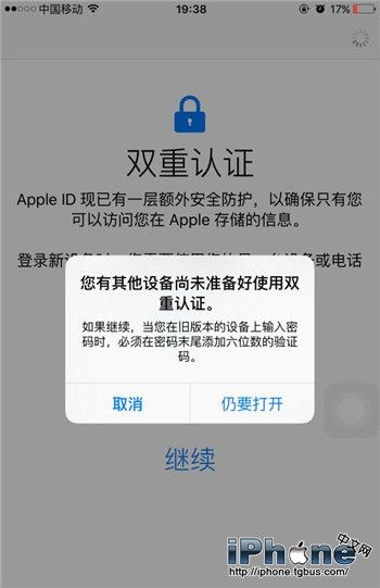 3. 出現上圖這個提示是因為你當前的 Apple ID 還登陸過其他非 iOS 9 系統的設備,點擊“仍要打開”即可。