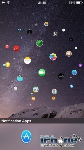 裝好插件之後先重啟使得插件生效,當重啟之後能夠發現,用戶設備當中一切的應用程序圖標在主界面當中組成了一個球形,這就是插件帶給我們的一個效果。用戶用手指即可控制球的活動方向,點擊圖標即可翻開相應的應用,長按圖標則能夠卸載應用,用雙指拖動能夠控制球形的伸縮。而下方的Dock欄位置則被用來顯現目前有推送的應用程序以及正在後台運轉的應用程序,用戶點擊即可翻開,同時也支持一鍵關閉一切後台。