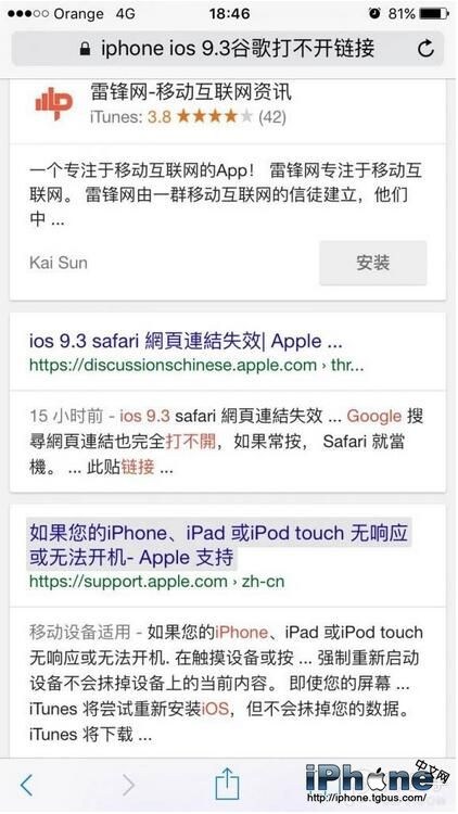 在國內外的蘋果論壇上,多名iPhone和iPad用戶反映,稱升級最新系統iOS9.3會導致多個程序內的鏈接失效,比如在自帶應用 Safari、信息和郵件程序之內點擊鏈接是沒有反應的(這是逼用戶換第三方浏覽器如UC浏覽器等的節奏)。不過也有少數用戶指出,這一問題在iOS9.2.1時就已經出現過,目前蘋果還沒有對這一問題作出解釋以及提供有效的解決方案。