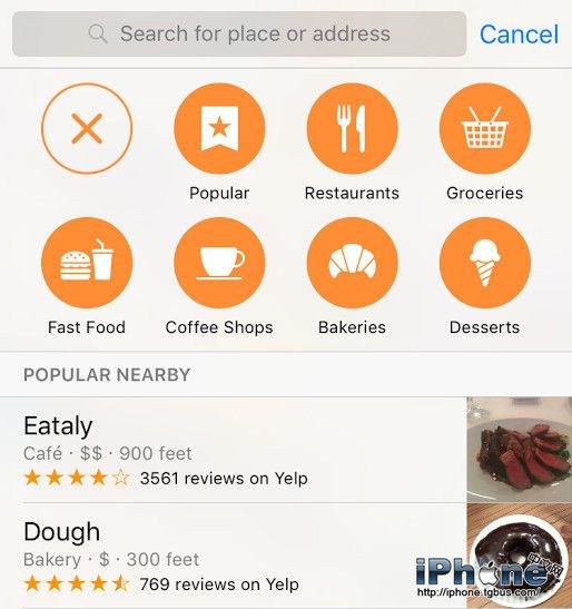 蘋果地圖如今也變得更加實用,它可通過來自第三方的數據展示周邊的商業服務,比如餐飲和購物地點。