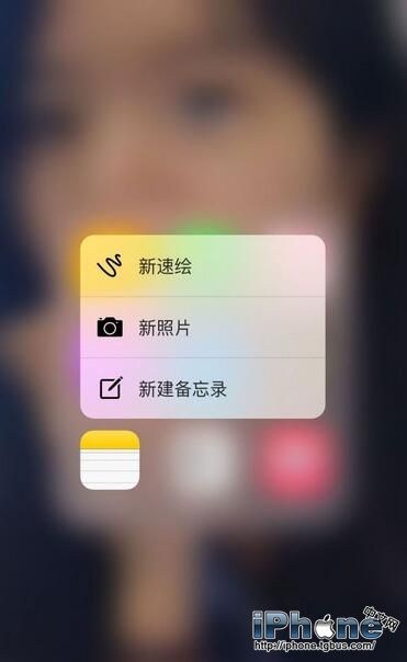 1.首先,我們可以在備忘錄圖標上按壓,利用3D Touch新建一個備忘錄。