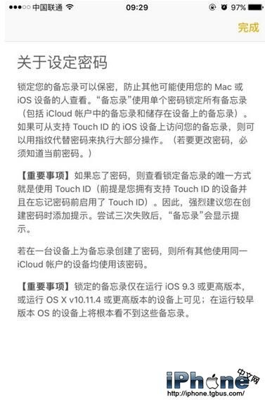 5.上圖為蘋果給出的關於備忘錄加密的一些注意事項。