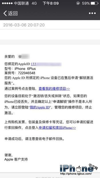 這種釣魚郵件一般是得到Apple ID賬號、電話後給失主發送郵件、短信、打電話等。冒充蘋果官方,聲稱查詢到你的手機丟失,有不法分子正在刷機解鎖你的手機,現在要阻止刷機解鎖,然後為你要Apple ID賬號和密碼。