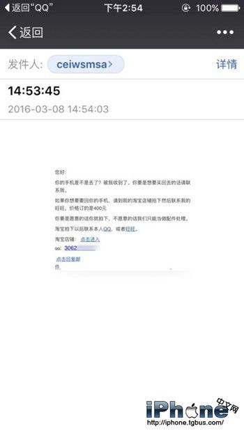 還是通過郵件告知你,你的手機是不是丟了,被我收到了,想要找回的話聯系我,只要400元!