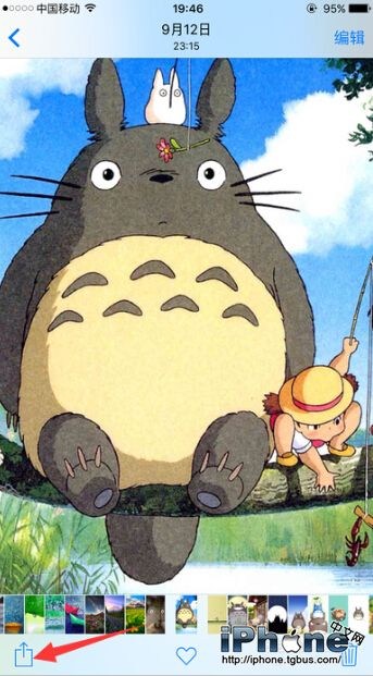 在照片裡面找到想要隱藏的圖片,打開它,然後在頁面的左下角,有一個【分享按鈕】,點擊它
