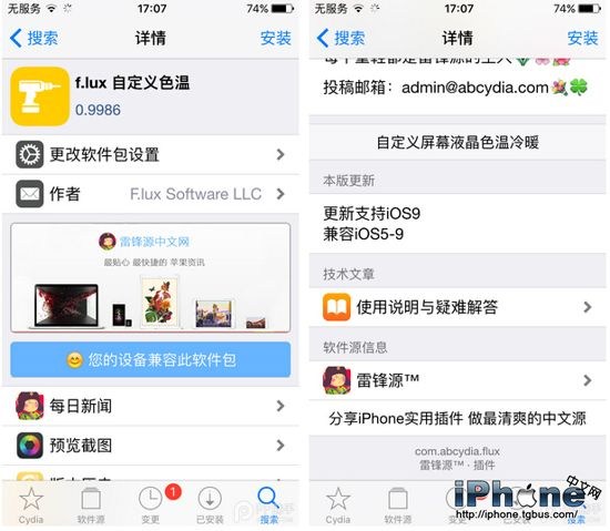 最後,f.lux目前已經兼容iOS5-iOS9越獄,雷鋒源可免費下載這款插件,有喜歡的用戶可以嘗試一下。這可是iOS9.3 beta1中Night Shift的“師傅”哦。